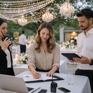 Ligados a organização do casamento estarão o Wedding Planner e Coordenador do Casamento. Eles atuam em conjunto na organização, e no dia do casamento um deles, ou ambos, (conforma a complexidade do evento), irão coordenar todos os acontecimentos e dar assistência aos noivos.